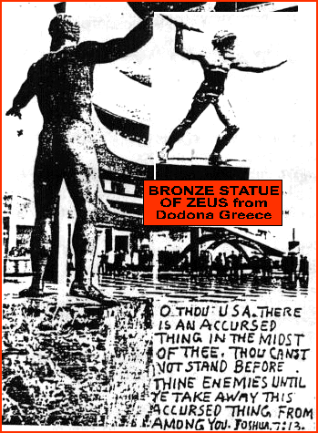 Some of the reconstruction they did was give the image a wide beard like Zeus The also took away the torch and put in its hand an arrow pointing toward the sky. They turned the image which was facing north, a few degrees east to face the rising sun at the summer solstice. I remember one of the statements on the news by the mayor of Birmingham (if my memory serves me correctly). He said, "we wanted it to look more like the Greek god Zeus!" Why the arrow in its hand? In the Scripture, for example, an arrow is the same thing as a lightening bolt, which is the clear context of Habakkuk 3:11, the light of thine arrows." See also Psalm 18:14 & 77:17.