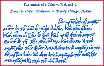 The Codex Montfortii is a Greek manuscript that contains I John 5:7 in the text, but there is debate as to when it was written. Those who appreciate the text believe it was written about the 11th or 12th century, but those who hate the text believe the Codex Montfortii to have been written in the 15th century.